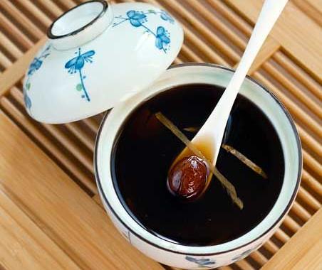 4、30分钟以后,加入红糖,再煮5分钟左右,糖融化就可以了
